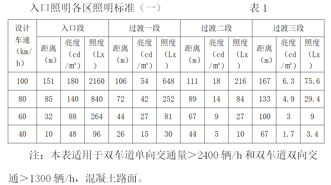 中間段和過渡段也稱基本段,隧道內(nèi)的基本照明,可按照隧道中的設計車速對照度的需求決定的。